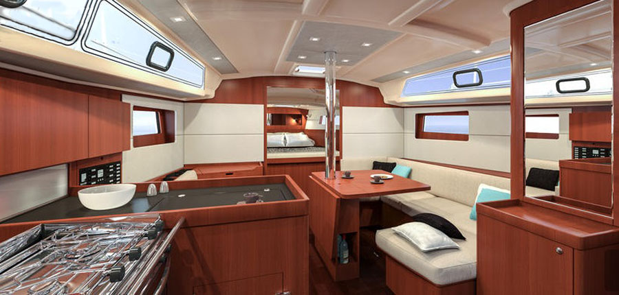 On the Oceanis 41.1, sailing is comfortable and well-balanced thanks to a hull, designed by Finot Conq. With the mast now further aft, the sail plan is now optimal and she demonstrates outstanding speed and stability under sail.