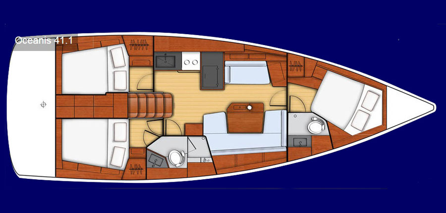 With the minutest details lending themselves to personalisation, the lines of the Oceanis 41.1 interior are airy and harmonious in all layouts. With a choice of woodwork, colours and lining materials, not to mention the number of cabins and shower rooms, there has been a considerable leap forwards on the Oceanis 41.1 in the way it adapts to different crew configurations and lifestyles on board. The generous space in the owner cabin is worthy of a 45’ cruiser and enables you to face the bed forward.